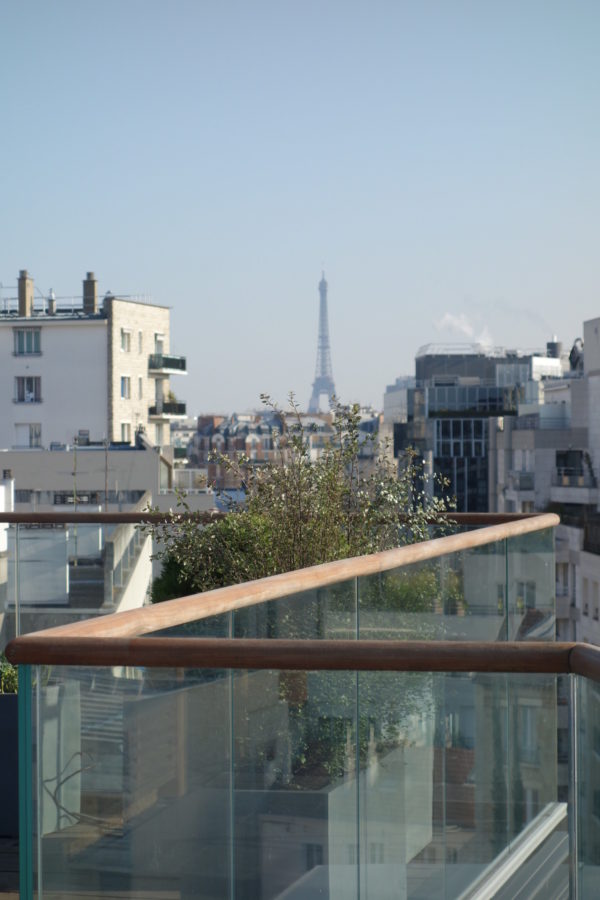 A panoramic view of the roofs of Paris and the Eiffel Tower while remaining safe and without obstructing the panorama. This is what we realized during our last building site: a railing pose in low profile on a housing building in Boulogne-Billancourt.