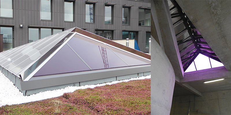 This acheivement provides an artistic effect but also economic by bringing natural light to the lower part. A true green alternative to artificial lighting.