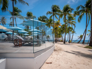 Discover one of our latest glass railing projects! This installation, built in a hotel on the island of Guadeloupe, offers a magnificent view of the sand and turquoise water of the Atlantic Ocean.