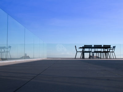 Glass railings made of hydrophobic EVA toughened laminated glass were installed in low profile thanks to our GARDA A solution with *Sabco® profiles from Sadev.