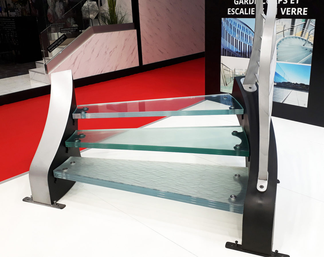 - Glass railings on specific fixing systems: on KRONOS® adjustable clamps, on posts or with points.